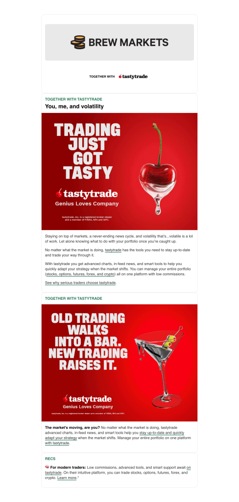 tastytrade also won a Silver Medal at the 2025 Financial Communications Society Awards in the “Digital Display: Consumer” category for our Dynamic Stock Ticker ads on The Wall Street Journal.